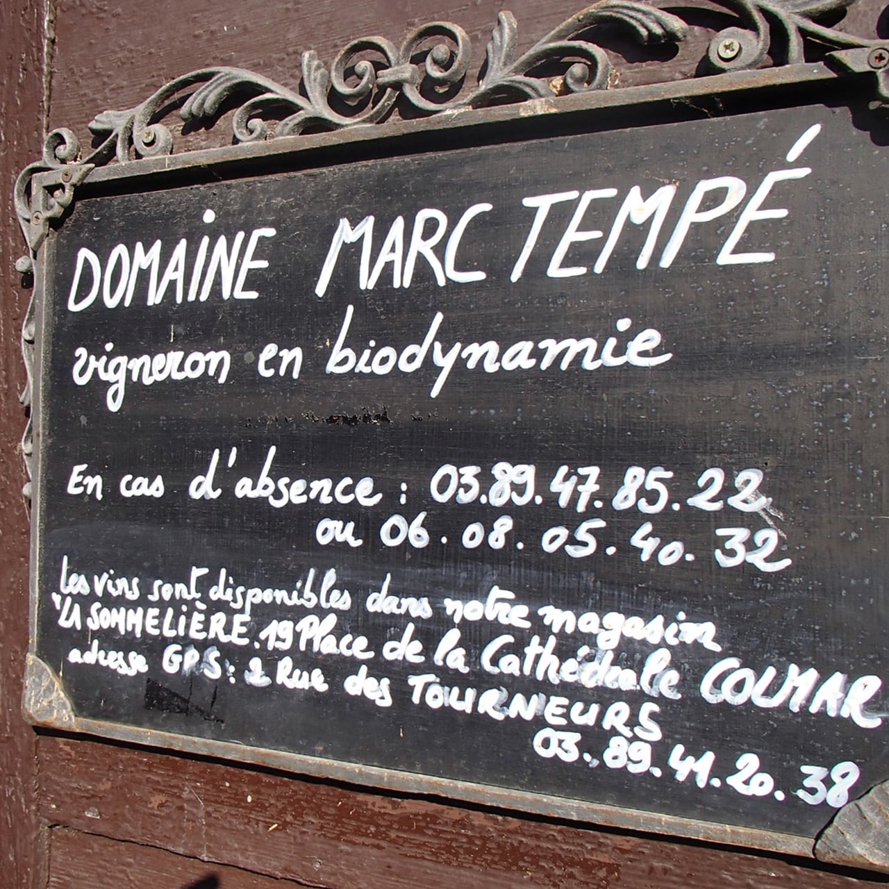ドメーヌ・マルクテンペはアルザス南部の中心、コルマールから7kmほど進んだ南西向きの ツェレンベルグ村に有ります。アルザスは南仏のペルピニャンの次に降雨量が少なく、乾燥 した地域。南向きの夏の畑は「目玉焼きが焼けるほど」暑いため、ブドウにもしっかりと糖 度がのります。標高は225 ~ 260m、粘土石灰土壌をベースに、ヴォージュ山脈の花崗 岩や黄色みを帯びた石灰の混じる多様な土壌は、さまざまなブドウ品種に適合し、ミネラルたっぷりなふくよかな味わいを生み出します。 初夏、マルクの畑の土からはなんともいえない深い土の香りが漂います。雑草も元気に 生い茂り、ブドウの樹の根元には直径1cm弱のミミズの穴がポコポコ。